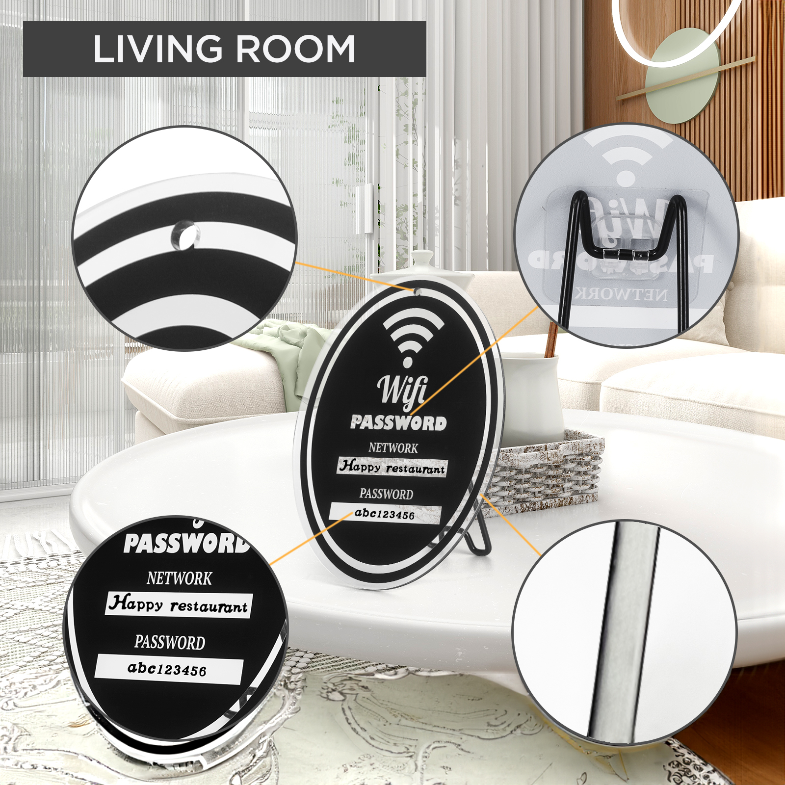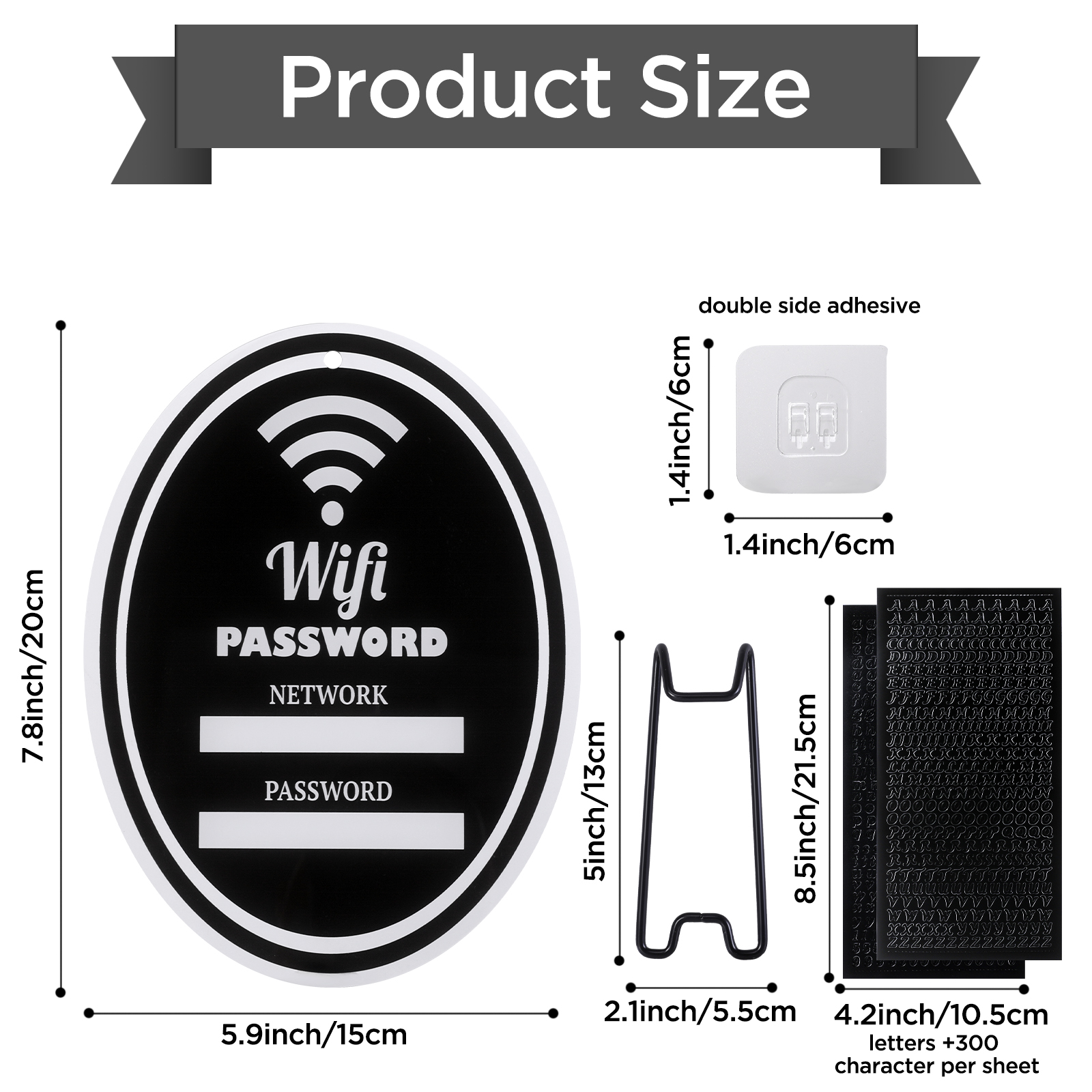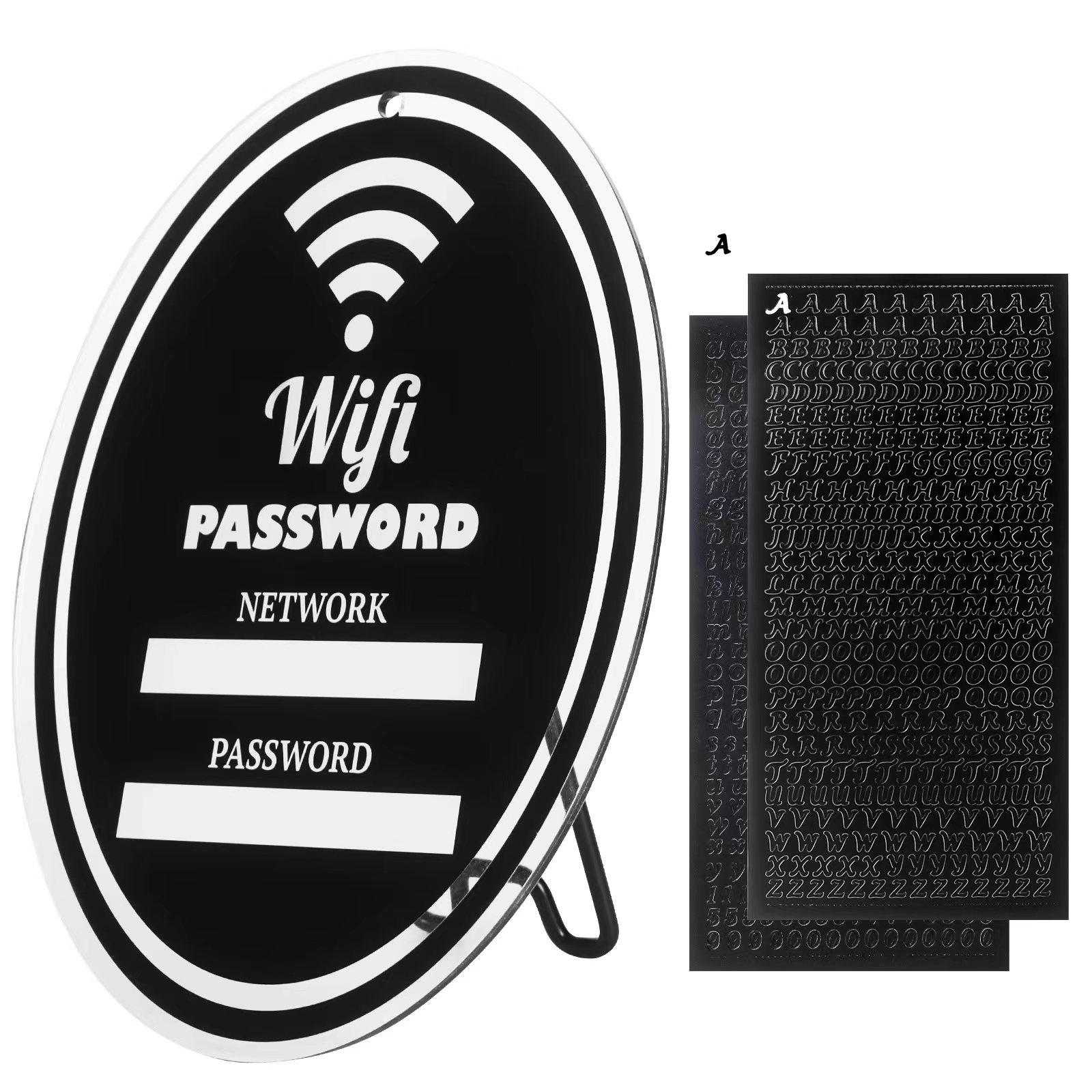 Thoughtfully Chosen Package: This guest bedroom essentials includes a 6-by-8-inch password sign with a convenient hanging feature, a detachable Metallic black support base, and two Character sheets with adhesive with a total of +600 characters to Allow you to write any combination you want