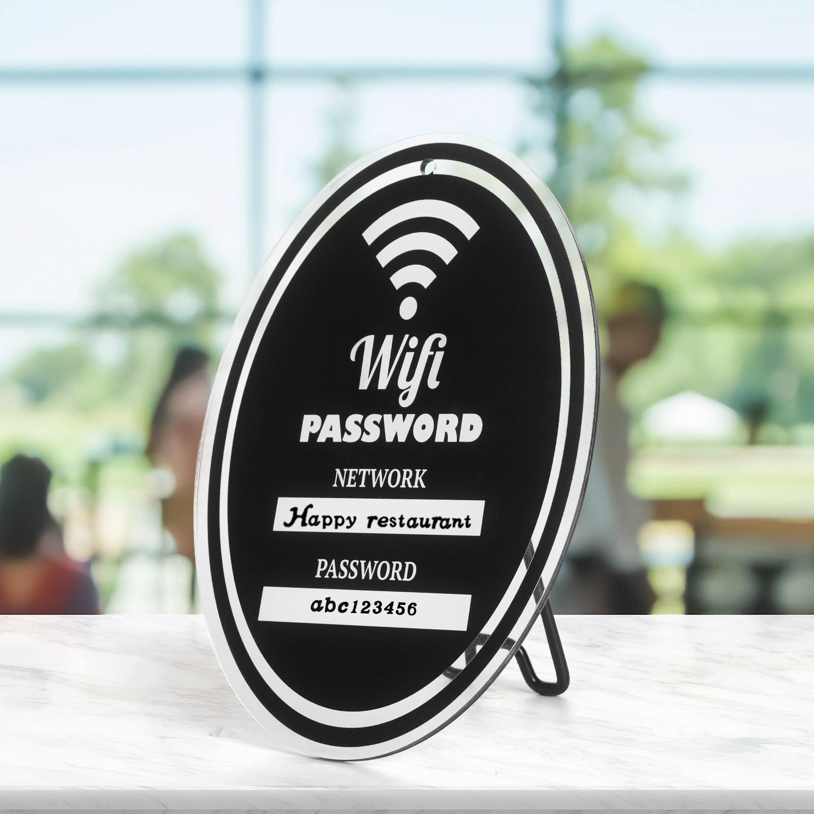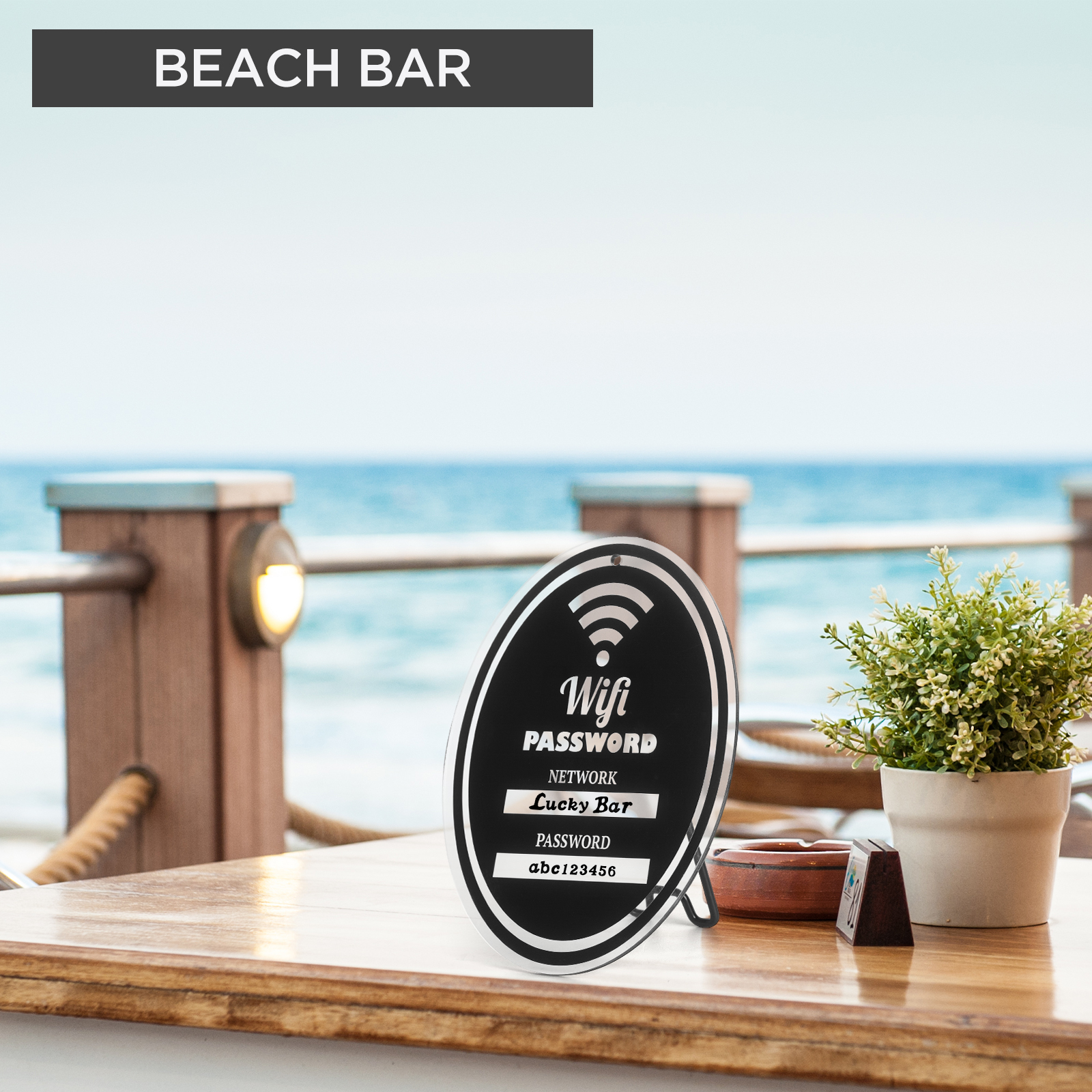 Exquisite Decor for Any Space: Unleash your creativity with this Wi-Fi Password Display that effortlessly adapts to your style. Hang it elegantly on your wall or put it on any base to display it by utilizing the sleek black metal bracket base. Whether it’s your cozy home or bustling business, this stunning sign will be the center of attention, proudly proclaiming your network-enabled area.