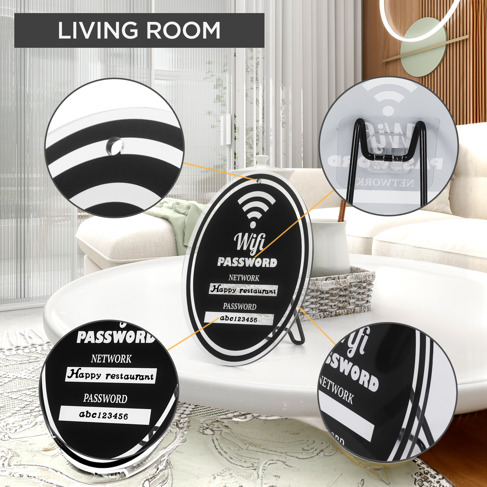 The Perfect Home and Business Companion Ideal for family gatherings, residential rooms, shops, cafes, and hotels, this wifi sign for guests serves a dual purpose. Not only does it provide much-needed password information for your guests, but it also adds a charming sentiment to your surroundings, leaving a lasting impression.